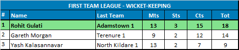 FIRST TEAM LEAGUE – WICKET KEEPING