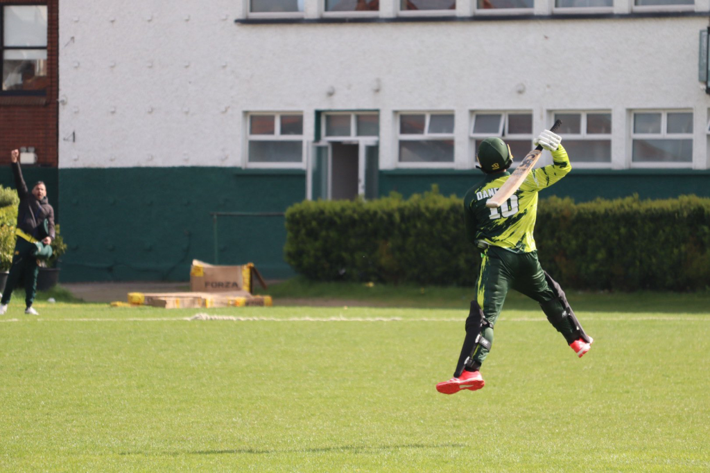 After 30 overs Knockharley had been reduced to 130/5, this brought Daneyaal Janjua came to the crease. He rode his luck early, offering a couple of opportunities that the Terenure side failed to take. This proved to be a fatal error as Janjua caught fire blasting the bowling to all parts and in doing so bringing up a sensational hundred off the last ball of the innings.