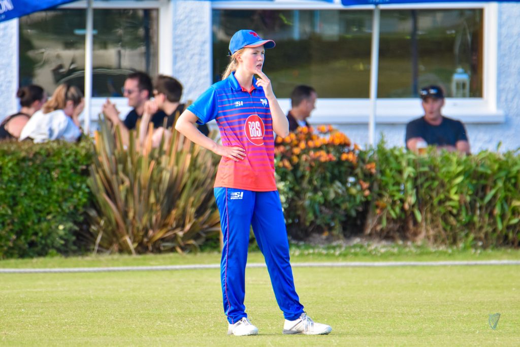In The Village, the home side enjoyed first use of the pitch with Meg Thompson leading the way with a commanding 84 supported by Irish International Arlene Kelly who contributed 36 and Freya Sargent (following her recent transfer from Clontarf to Malahide) chipping in with 23. Leinster undoubtedly struggled in the field with a number of their front-line bowlers with Ava Canning, Laura Delany and Sophie MacMahon all unavailable. The three wicket takers for the Rathmines team were Katie Dagostino (1/27), Aisling O’Kelly (1/29) and Orla Bagnall (1/31).