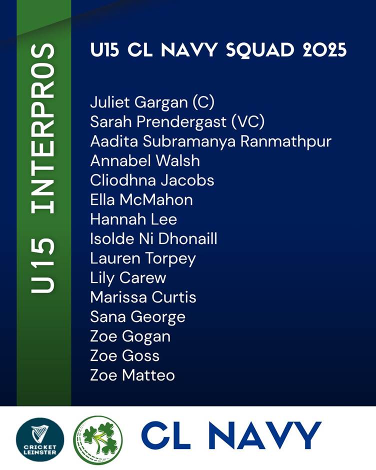The U15 Cricket Ireland Interprovincial Series continued today with the second leg of fixtures this week. Cricket Leinster (CL) Navy have 2 wins behind them, one in the T20, one in the 35-over format, both against CL Blue.