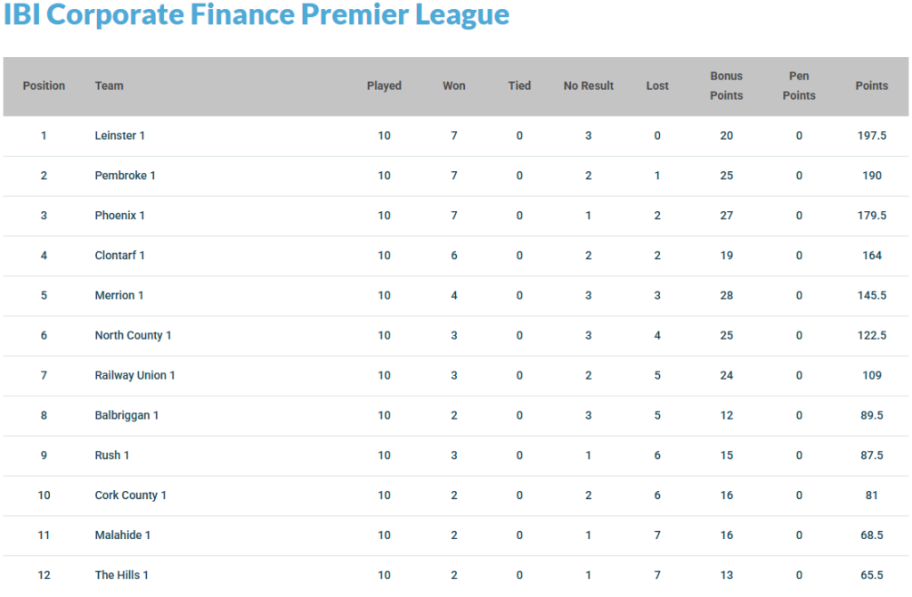 The final round of the IBI Corporate Finance Premier League ‘regular season’ takes place this weekend, and with one round of fixtures left to go, there’s just one space between the two leagues still up for debate – with those two teams set to face off as Railway Union and North County will do battle at Park Avenue!