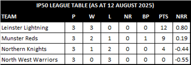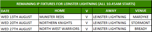 The Lightning will go into these final matches looking to build on the strong start established back in May when they won all their home games at Oak Hill, Co Wicklow (table below):