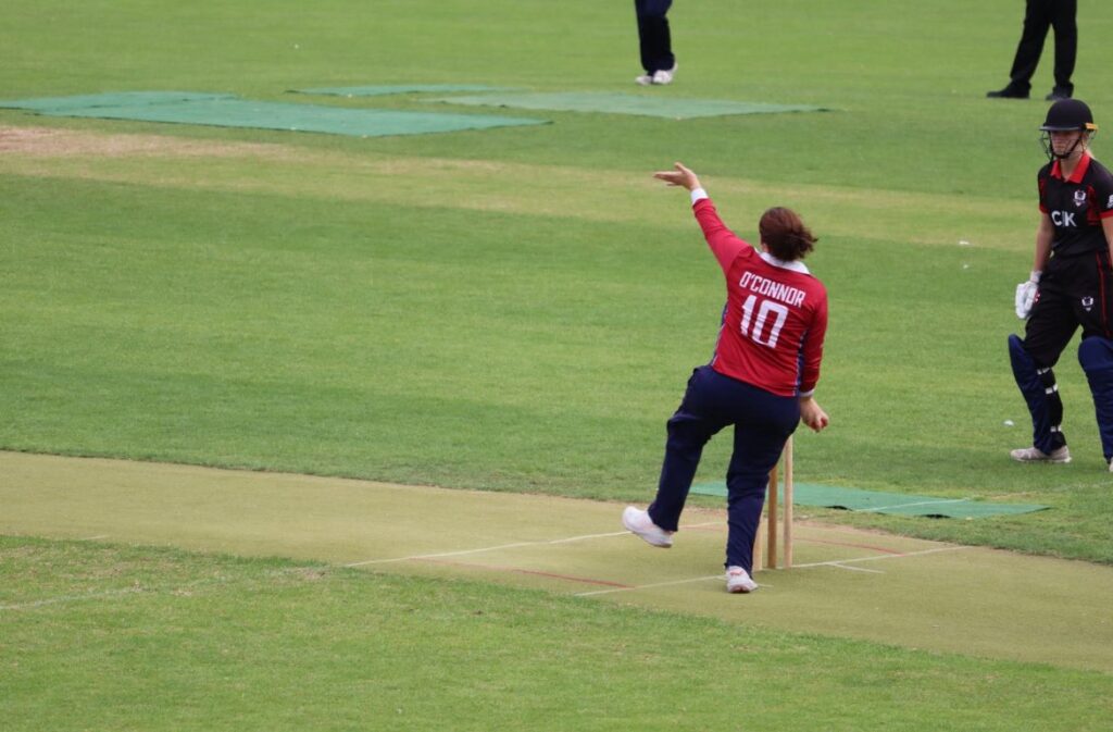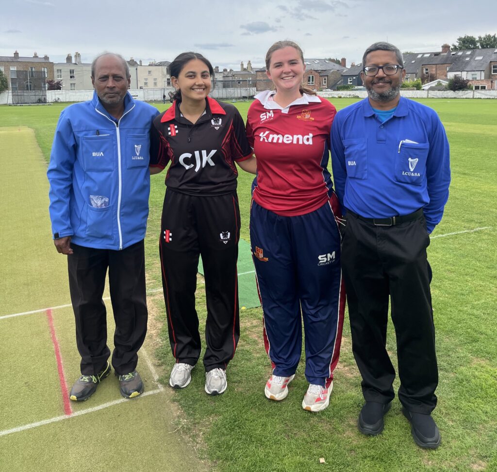 Pembroke won the toss and elected to bat first on an overcast afternoon in Rathmines. They got off to a rocky start, losing their skipper Vanshika Shukla after just 7 balls. This brought together Izzy McLean and Isobel Jennings and they built a bright partnership leaving their side 30/2 midway through the 5th over as a smart bit of keeping from Gee saw McLean out stumped off the bowling of Leetch. From there it was a struggle for the Pembroke side as Isobel Jennings struggled to find willing partners at the other end, batters came and went, before Jennings herself was dismissed for 31, leaving the side 67/6. This brought Jess Duffy-Mullen to the crease, she was the final batter to make doubles figures, adding 12 as she dragged their side up to 97/9 from their 20 overs with the help of the tale. It was a controlled bowling effort from Leinster featuring an attack with plenty of experience, Sue O’Connor was excellent with the new ball, taking 2/18 from 5, whilst Nazli Leetch finished with the same figures off just three overs, however Sparrow was the pick of the bowlers, finishing with 3/20 from her four overs.