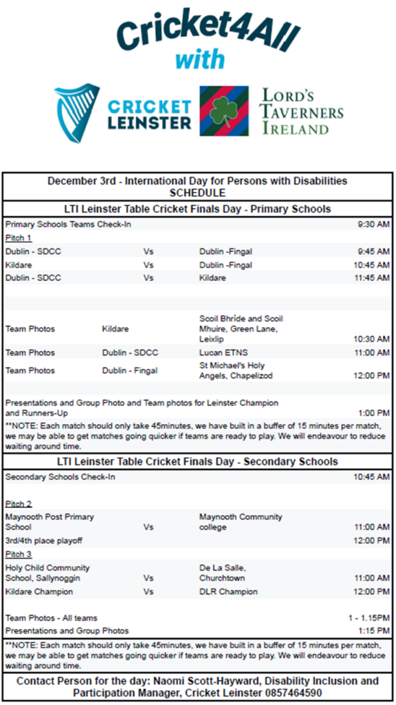 LTI Table Cricket Leinster Finals Day to Mark the International Day for Persons with Disabilities