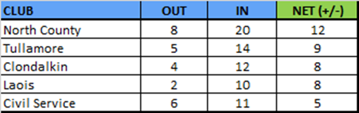 The biggest beneficiary of player movement is North County CC who welcome 20 players transferring from other clubs and are up 12 players (net of departures from Inch).