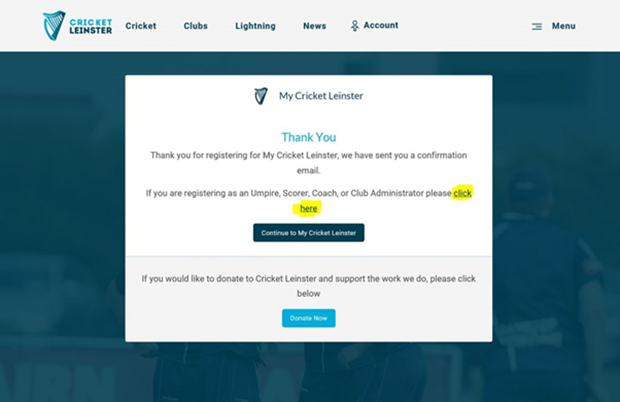 For those who are already registered as just players or just umpires/scorers/coaches/club admins and wish to apply for another role or vice-versa please follow these steps