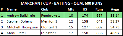 Andrew Balbirnie enjoyed a brilliant return to regular club cricket in 2025 and thoroughly cashed in with his bat amassing 617 runs at an incredible 88.14 runs per innings including a highest score of 174 against Phoenix back in August.