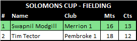 There were two players hunting down the Solomons Cup for catches in the field and in the end, Swapnil Modgill of Merrion will take home the trophy with 13 catches, just one ahead of a valiant effort from Tim Tector at Pembroke (who won this award last year).