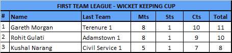 On the wicket-keeping front, Gareth Morgan (Terenure) is currently in top-spot with 11 dismissals however with six rounds still to play, the destination of this trophy is still too close to all – Rohit Gulati of Adamstown has 10 dismissals (just one shy of Morgan).