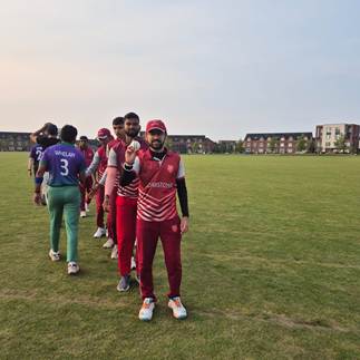 The Quins openers then smashed 91 for the first wicket in just 11 overs to give the home side hope that the chase could be achieved. Adam Hickey was dismissed for 47 and then his fellow opener Sumantu Powale retired hurt on 54. Devon Joyce and Seanan Jones then looked to add momentum to the chase adding 131 for the 4th wicket before Jones was removed by Abdul Aryan (3/51) with the score on 240 after 33 overs. Joyce continued to power on completing a fine 108 off just 78 balls (including 13X4s and 5x6s).